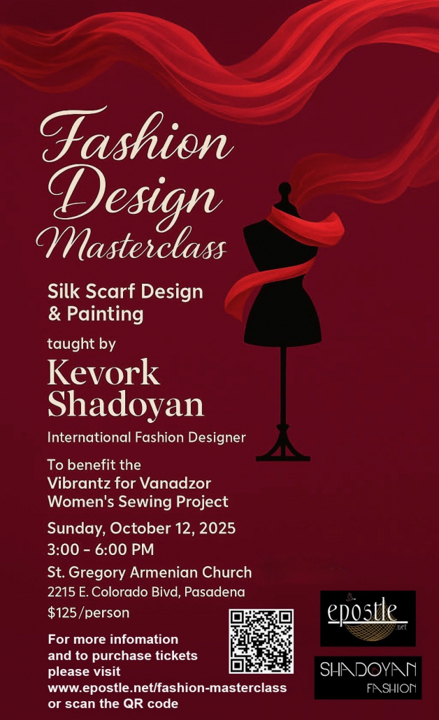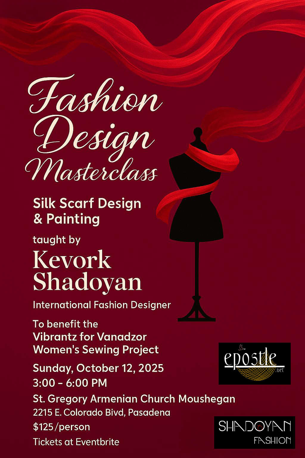 Learn the art of silk scarf painting in an intimate workshop with internationally acclaimed fashion designer Kevork Shadoyan. All proceeds support the Vibrantz for Vanadzor Women’s Sewing Project, helping empower women through sewing, design, wellness and entrepreneurship.
