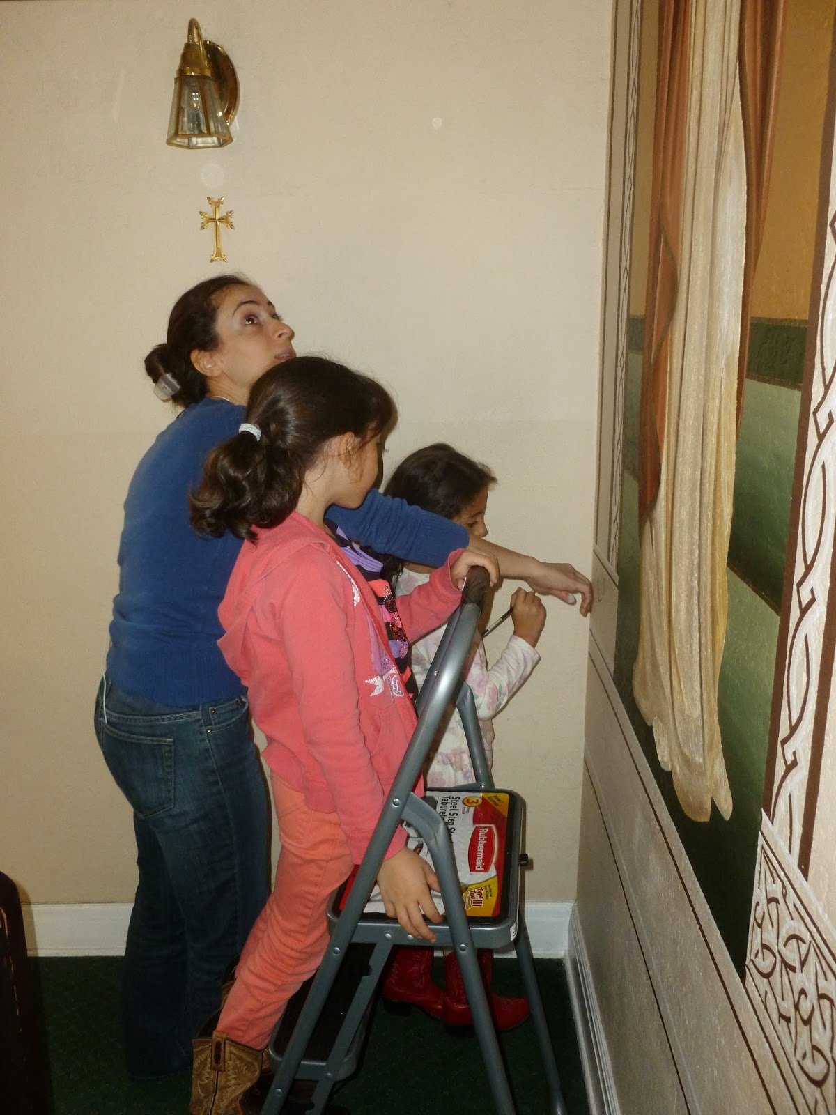 The President was standing across the street from an Armenian Church. This Armenian Church exists today because I exist. It exists because there are generations that didn’t die but live today. To the point, two little girls, four generations removed from the Genocide, came by during the presidential-visit. They laughed, spoke and sang in Armenian with me. They even learned some Armenian sacred painting techniques from Arpine. Yes, Armenians are not only here after Genocide, we’re creating and teaching the next generation. Who or what entity do I need to verify, recognize or acknowledge this reality? Our Armenian Church has a sign on it that proclaims its OUTREACH through Epostle, In His Shoes and Armodoxy. Simply put (and to the point): We are alive and creating.