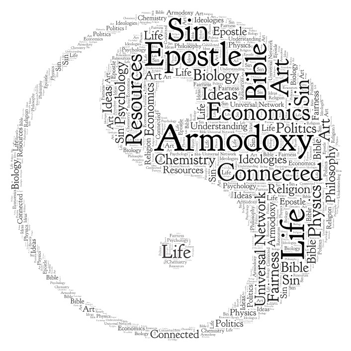 But the basic understanding in Armodoxy is that all things are connected in a universal network of life. Economics gives us the resources to buy the Bible, which defines sin, which psychology attempts to diminish. Physics explains the movement of the building blocks which chemistry and biology exploit into physical realities, that art presents in forms that express ideas that form ideologies that philosophy dissects and analyses. Politics creates systems that organize those ideologies, and religion is there to ensure the equity of distribution, claiming to have a connection to a higher understanding of fairness.